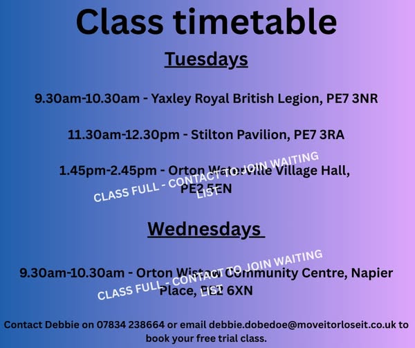Free taster session, email Debbie to book your first class
